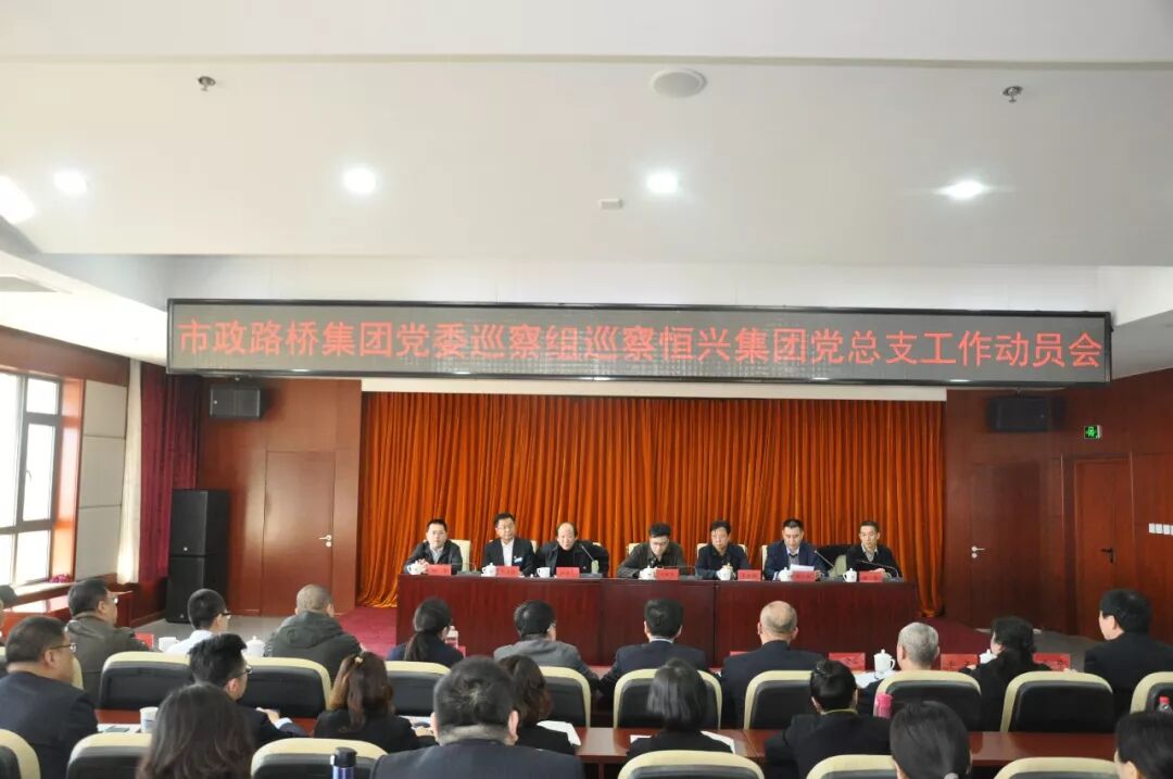 2019年3月15日下午,市政路桥集团党委巡察组巡察恒兴集团党总支工作动员会在市政路桥大厦十六层报告厅举行。集团公司纪委书记、集团公司党委巡查工作领导小组副组长刘建华,集团公司纪委副书记、纪检监察部部长、巡察办主任朱洪涛,全体巡察组成员,恒兴集团领导班子、全体中层领导人员出席会议。此次动员会由恒兴集团党总支书记、董事长邱绍刚同志主持。
